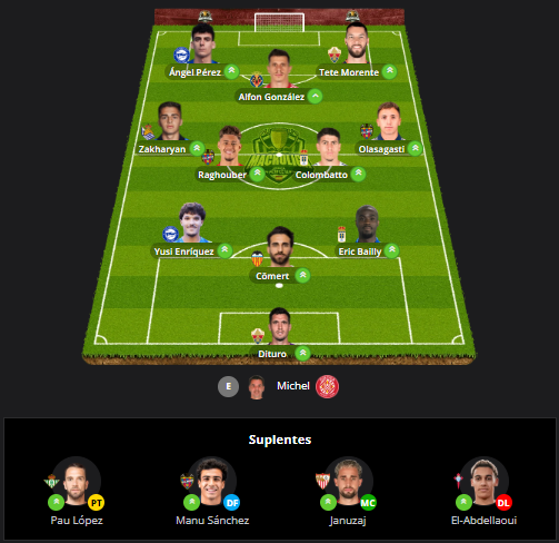 DITURO: No nos podemos fiar de los bandazos en la portería del Elche, pero con nuestro comodín (Dimitrievski) fuera del rango del valor que buscamos, solo nos queda, jugando, el bueno de Dituro. Es cuestión de tiempo que vuelva Peña, pero hay que aprovechar lo que dure.